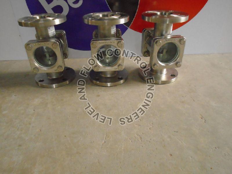 Wheel type flow indicators are much suitable for Horizontal as well as Vertical Flows. If flow goes in the pipeline when the rotating wheel are rotating which can be visible thro either side of the glasses. Wheel type flow indicators are used in colourless fluids also.